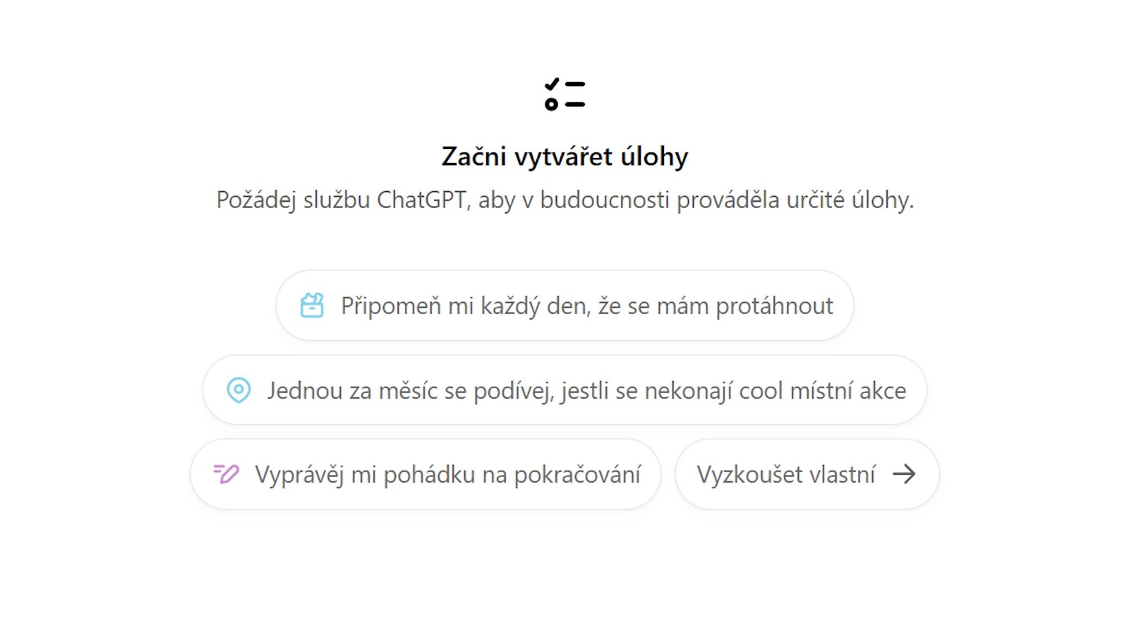 Nová možnost vytvářet naplánované Úlohy v ChatGPT