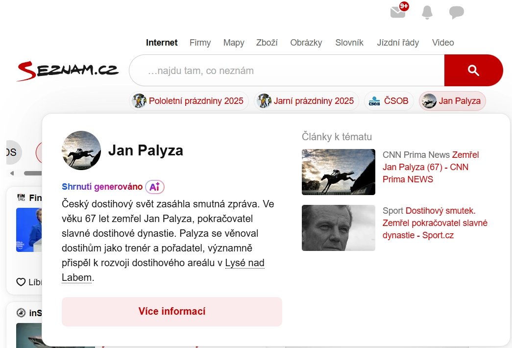 Na hlavní stránce pomáhá LLM generovat také vysvětlení, proč je mezi uživateli zájem o trendující témata, která Seznam zobrazuje pod políčkem pro vyhledávání.