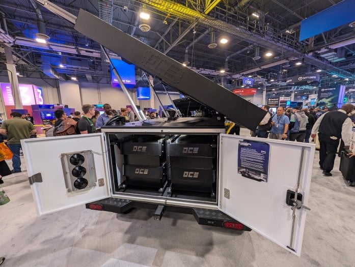 Připojený vozík obsahuje lithium-ion baterii s kapacitou 105 kWh a součástí jsou solární panely disponující 1000 W. To má auto i internetový aparát udržet v chodu až dva týdny.