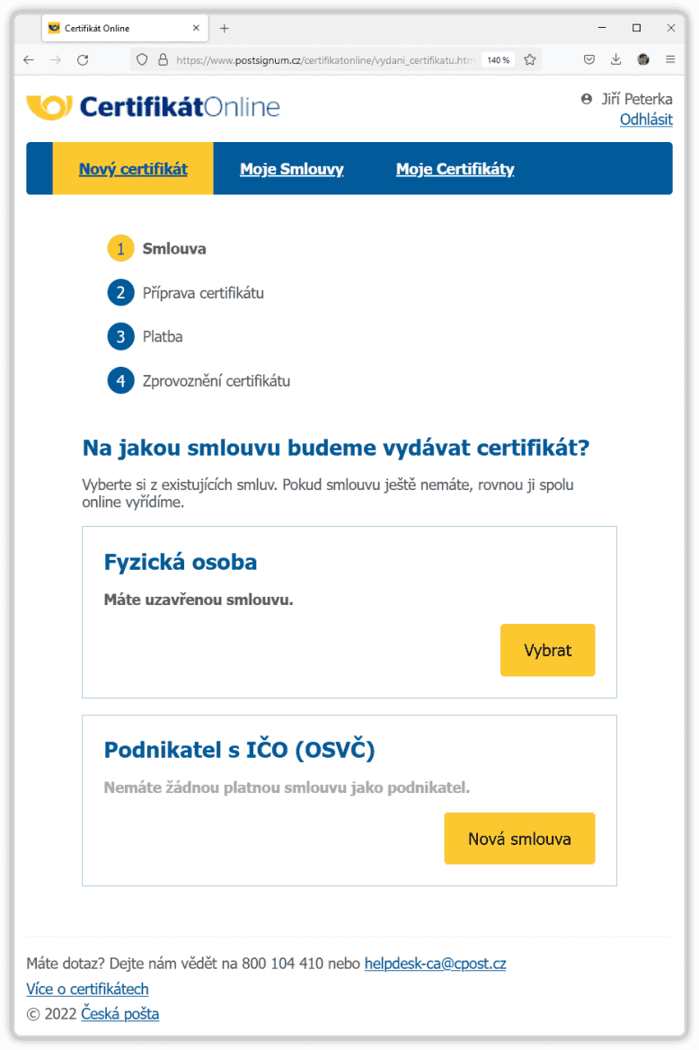 Navíc vám tato nová služba umožní uzavřít „na dálku“ i prvotní smlouvu s certifikační autoritou (vydavatelem certifikátu) o poskytování služeb, pokud ji ještě nemáte.