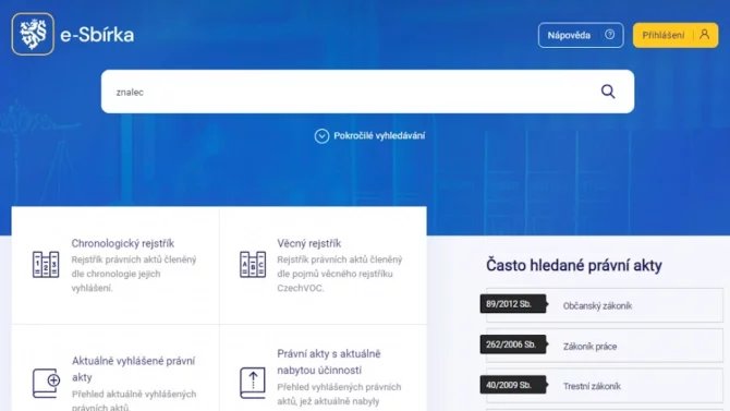 e-Sbírka nabízí právně závazný i jen informativní obsah