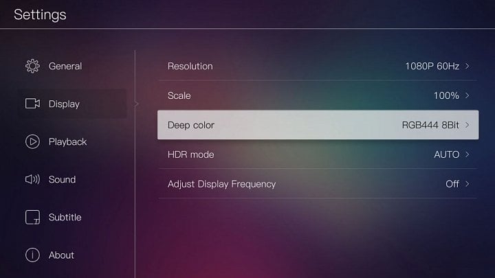 Menu nastavení – nastavení přehrávání