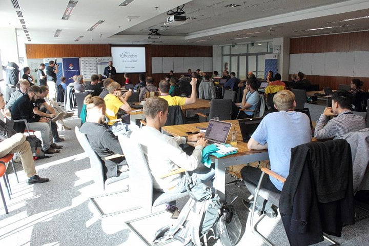 Takovou sešlost asi prosklená kancelářská budova Nejvyššího kontrolního úřadu (NKÚ) moc často nezažívá. Desítky lidí v tričkách s hashtagem #hackujstat na zádech se rozesazují kolem stolů ve velké zasedací místnosti a chystají si notebooky. Žluté nebo zelené tričko mají přihlášení vývojáři, černé nese porota, organizátoři a garanti jednotlivých datových sad.