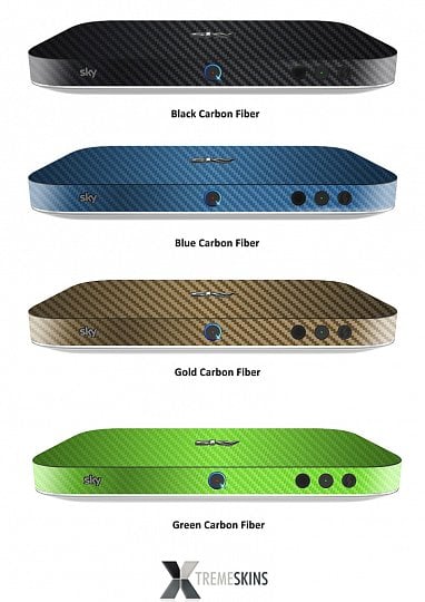 Můžete mít box i ovladač s texturou karbonových vláken nebo v imitaci kůže. V imitaci dřeva anebo s kovovou fólií. Opět jde jen o výsek z nabídky, která kromě Sky Q zahrnuje i starší Sky boxy. Více najdete na webových stránkách firmy či v nabídce britského Amazonu.