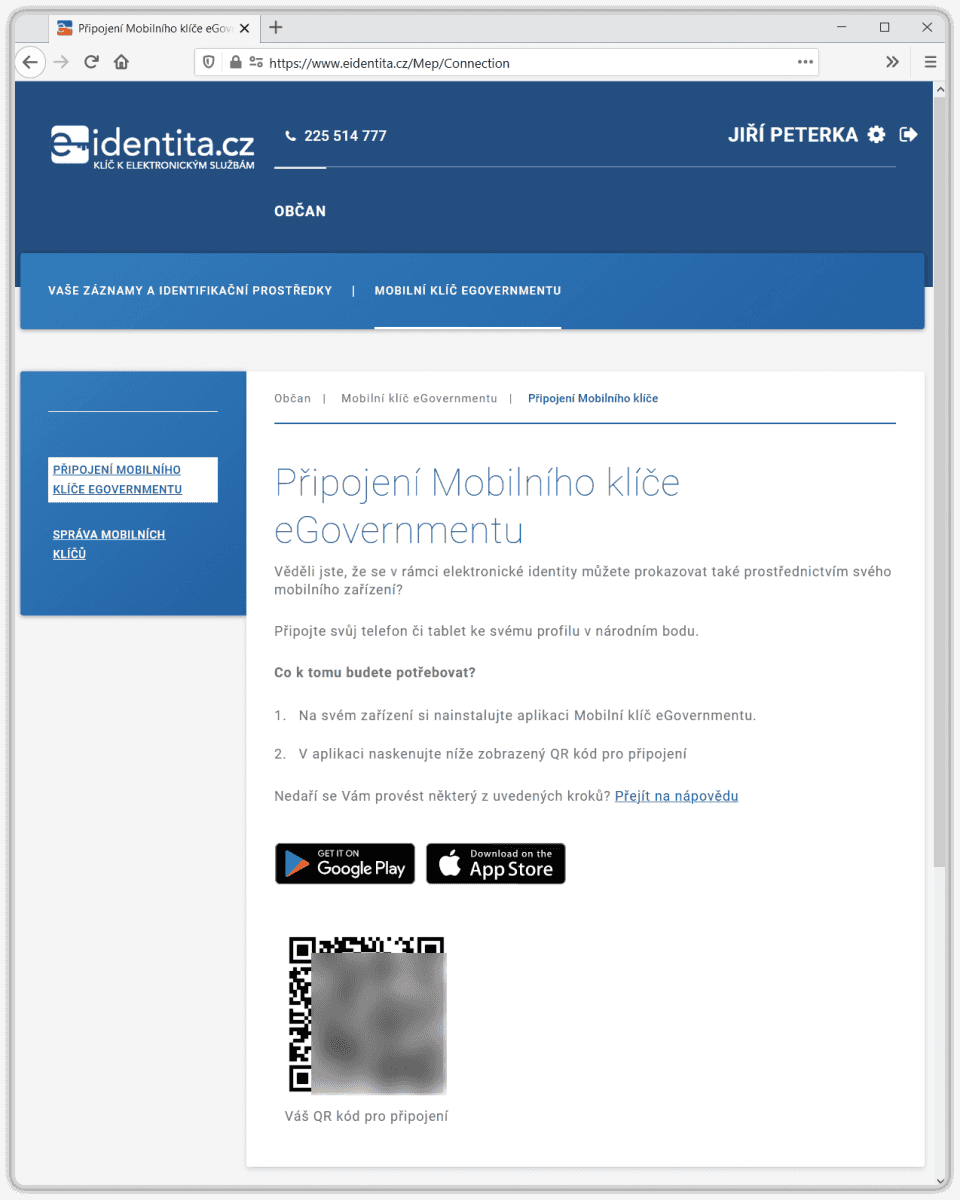 No a druhá fáze už je vlastně nabíledni: když už jste (jakkoli) přihlášeni ke svému účtu u NIA (u národního bodu, resp. na jeho portálu), můžete si aktivovat svůj Mobilní klíč eGovernmentu, nasnímáním QR kódu do příslušné mobilní aplikace. Postup jsem podrobněji popisoval již před časem zde na Lupě (a ještě v kontextu přihlašování do datových schránek).