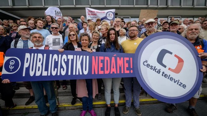 Několik desítek lidí protestovalo v pondělí před budovou České televize proti zrušení nedělního pořadu 168 hodin. Názor vedení tím nezměnili. Publicistické shrnutí týdne se satirickými prvky se už po prázdninové pauze nevrátí.
