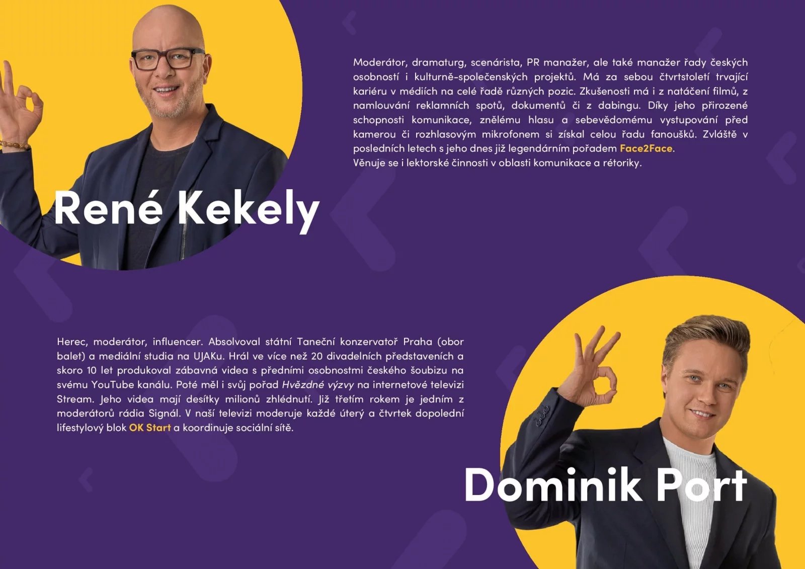 René Kekely také bude mít na OK TV svou talk show Face to Face, která dosud byla jen na internetu. Pro televizi zároveň pracuje jako její PR manažer.