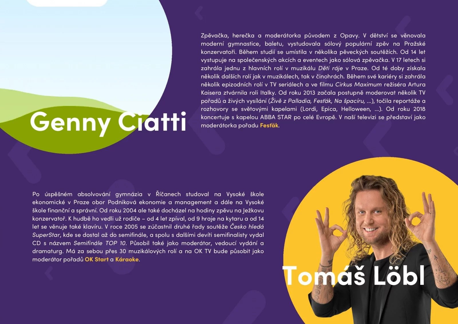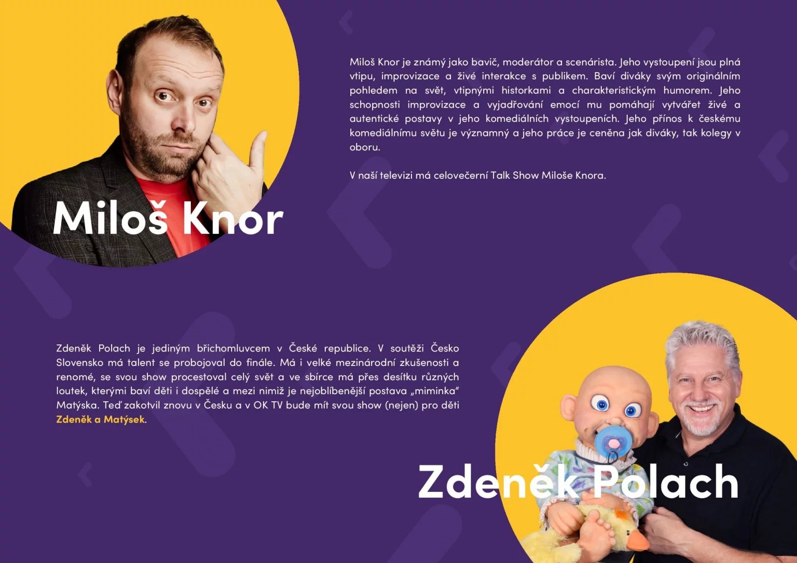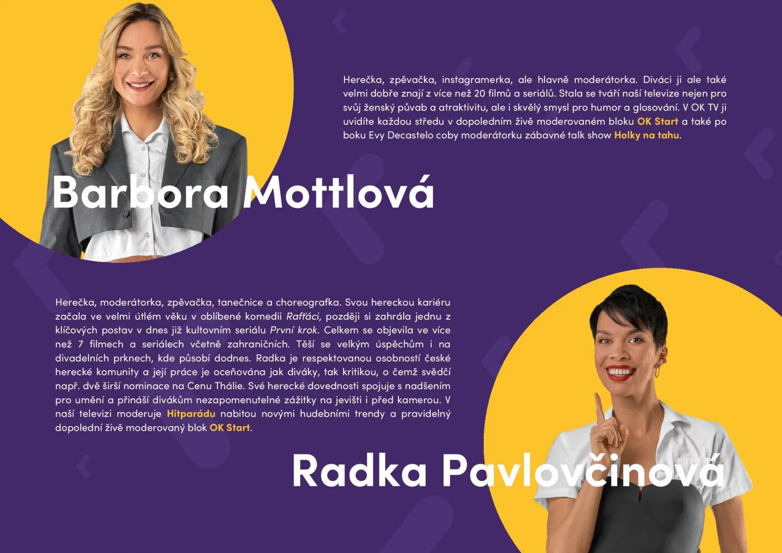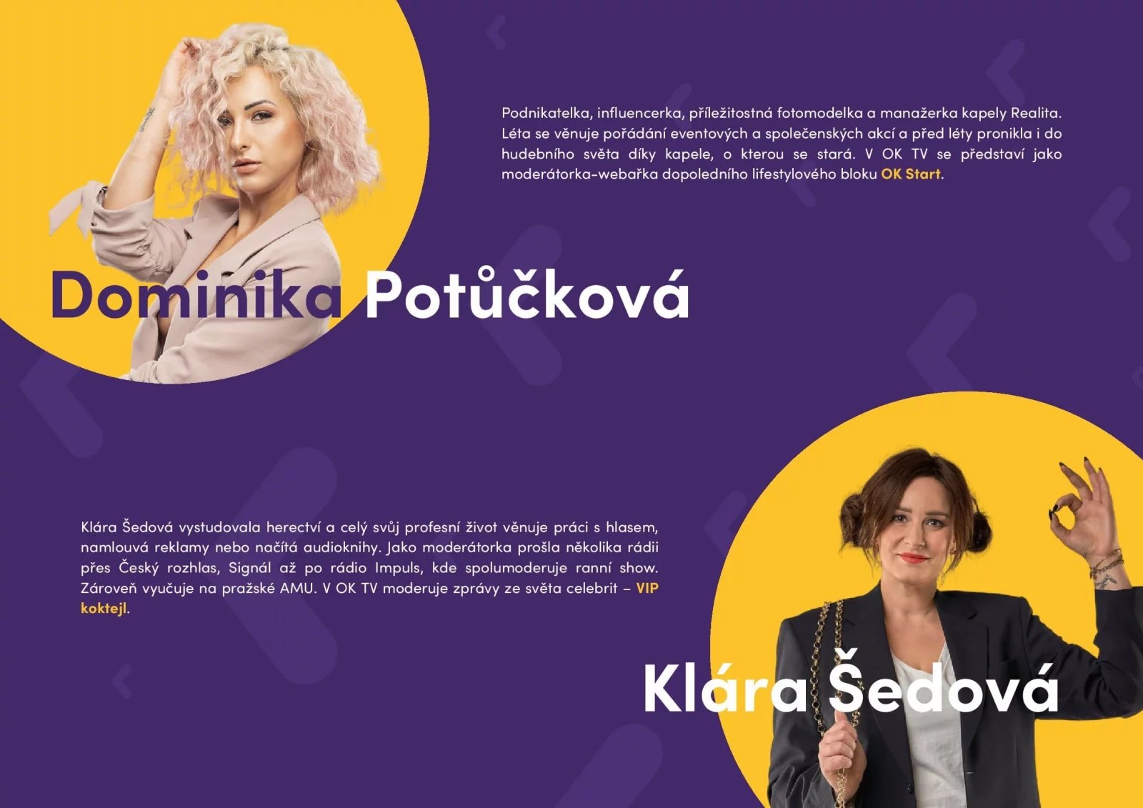Eva Decastelo a Bára Mottlová si budou s hosty povídat o tématech, která „zajímají (nejen) ženy“ v talk show Holky na tahu. Známé osobnosti přivítá i Aleš Cibulka, který pro OK TV natáčí talk show Sejdeme se u Cibulky. Lehce nekorektní a sarkastický humor a někdy i smrtelně (ne)vážná témata slibuje Talk show Miloše Knora.