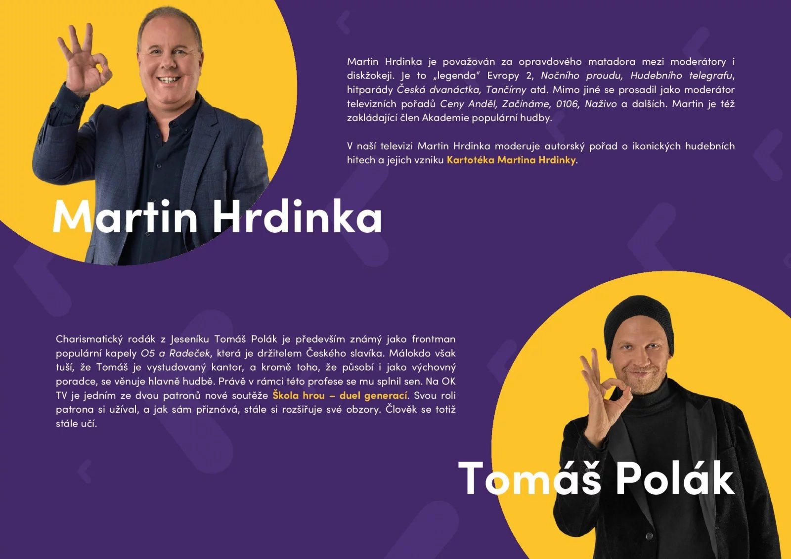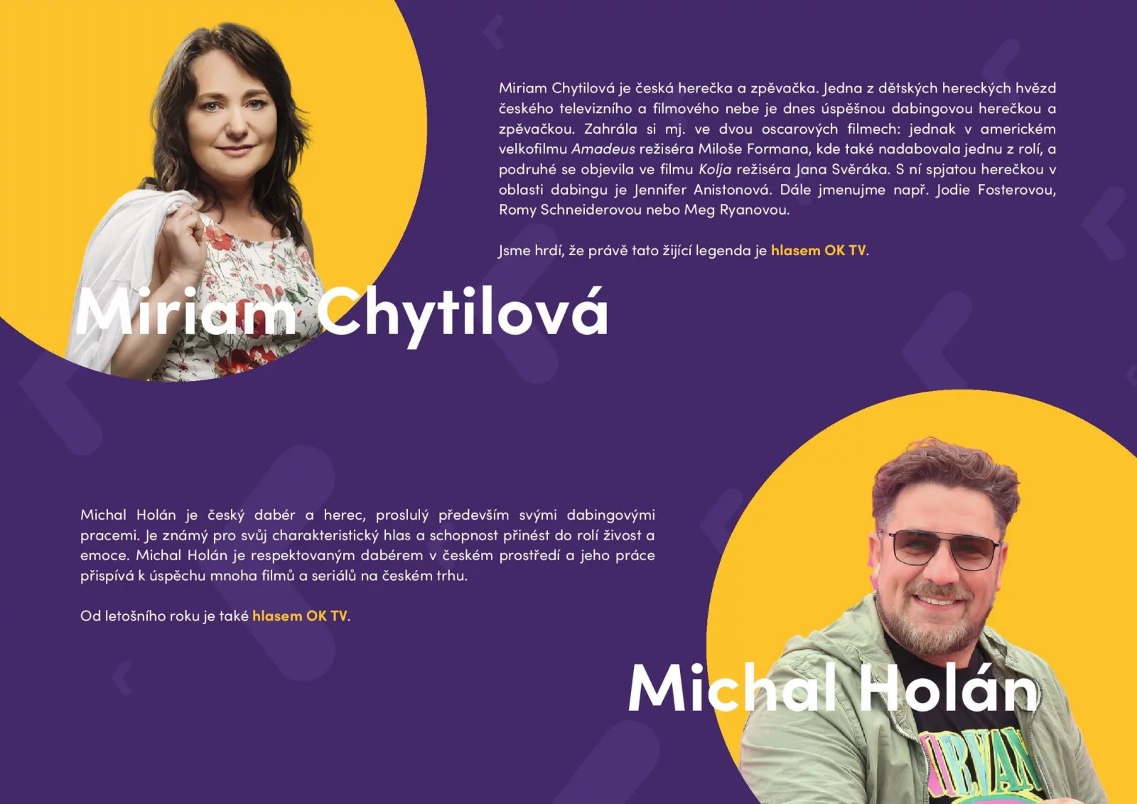 Kromě vlastní tvorby bude OK TV spoléhat také na nakoupené pořady. Od České televize například pořídila licenci na uvedení seriálu Byli jednou dva písaři. V komedii z roku 1973 účinkují Jiří Sovák a Miroslav Horníček.