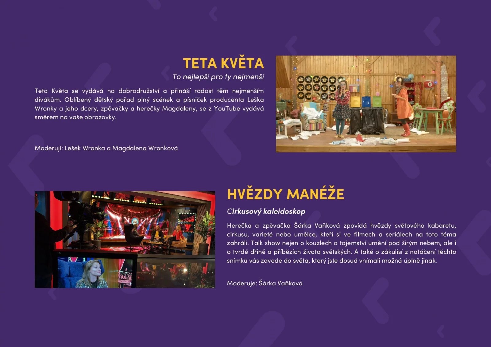 Zpěvačka Šárka Vaňková provede diváky světem cirkusů a varieté ve speciálním pořadu Hvězdy manéže. Šárka Vaňková se také bude střídat s Klárou Šedovou a Dominikem Portem při moderování večerních zpráv ze showbyznysu VIP koktejl.