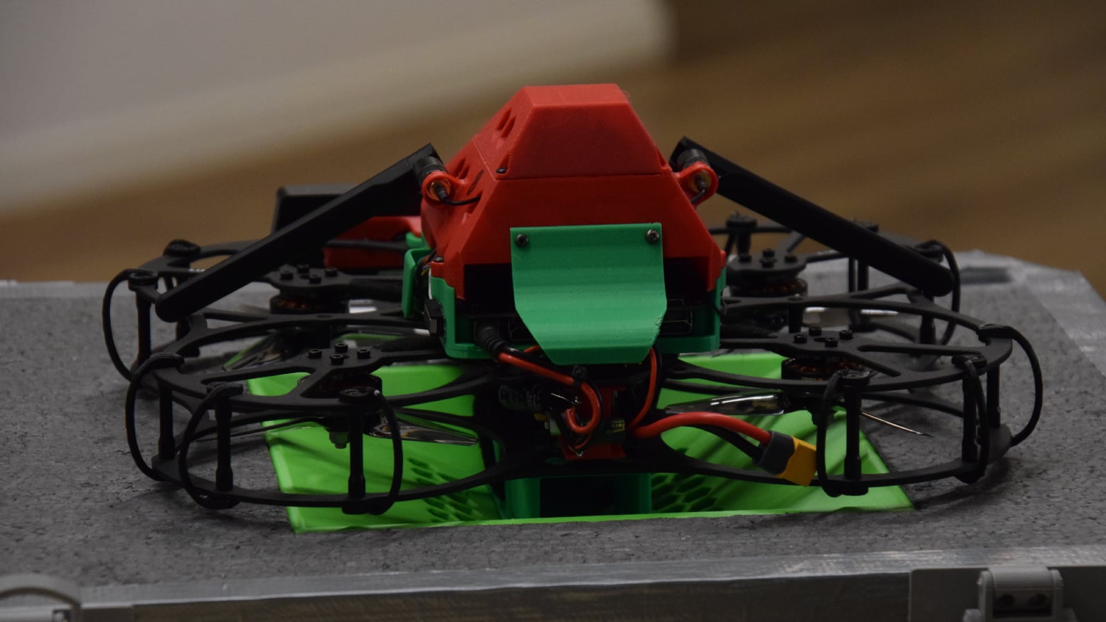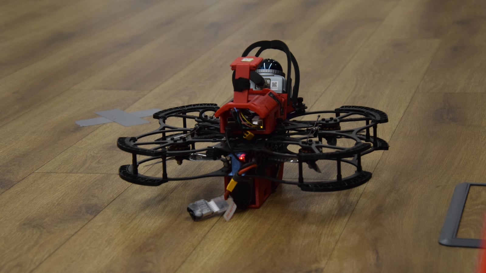 Dron, který tým předvádí, váží 1,6 kilogramu a je dlouhý i široký zhruba 40 centimetrů. Je vybaven lidarem, který vytváří 3D mapu okolí, palubním počítačem a několika dalšími senzory. doplněný o optical flow range finder senzor, který pomáhá dronu udržet stabilní pozici i při výpadku hlavního systému. Na spodní straně je umístěna přistávací kamera, která rozpoznává speciální ArUco kódy a umožňuje přistání s centimetrovou přesností. Dron je osazen standardními pětipalcovými motory a ochranným rámem, který ho chrání při případných kolizích.