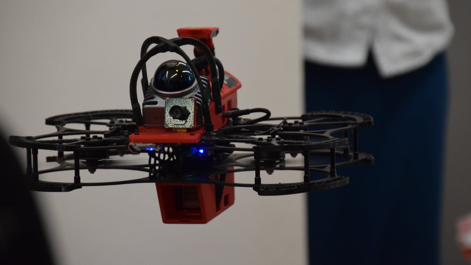 Výdrž baterie je zatím v řádu minut, ale jak tým zdůrazňuje, jde o neoptimalizovaný prototyp. „Je toho ještě řada, co budeme řešit – lepší baterku, menší motory, lepší rotory a celkově více rámu a menší nárazníky,“ popisuje Jaroslav Vítků, výzkumník, který se stará o hardwarovou část projektu. Přesto je už teď dron schopný prolétávat dveřmi, okny a podobnými úzkými prostory. Dokáže se orientovat i v zakouřeném prostředí. Vítků ukazuje, jak prolétl zhruba 80centimetrovým prostorem v otevřeném okně v zakouřeném prostoru, a jak si cestu našel sám.