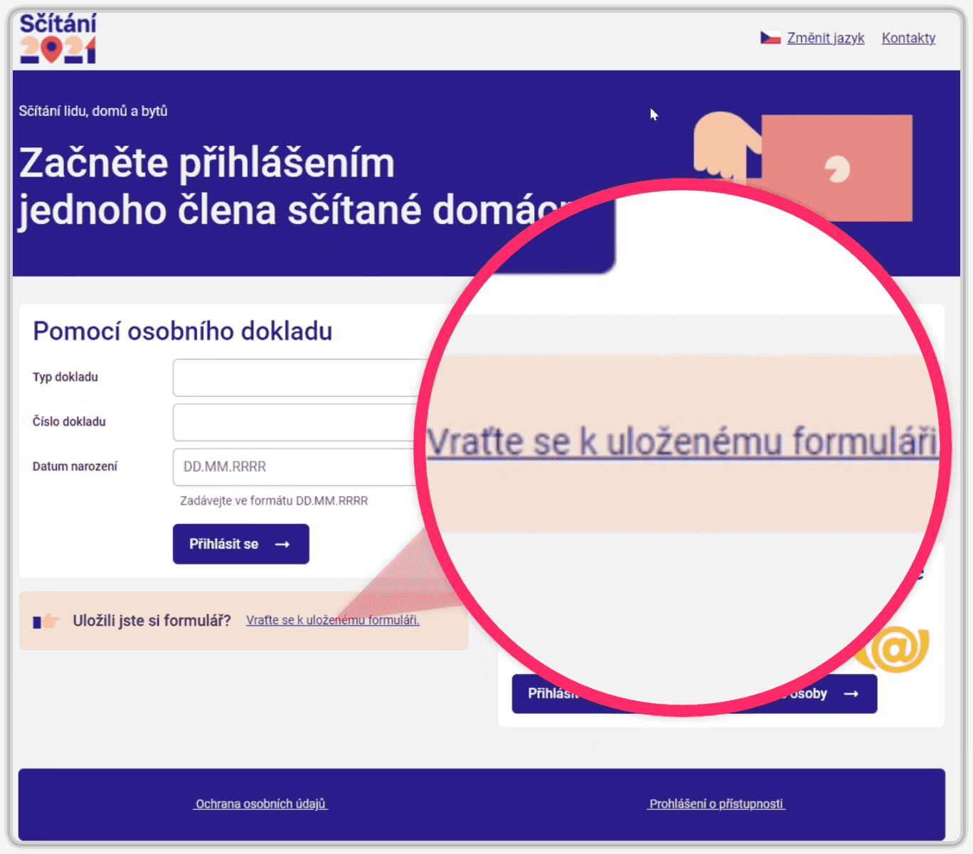 I když si ale nemůžete sčítací formulář sami stáhnout a pracovat s ním offline způsobem, stále ho nemusíte vyplnit „na jeden zátah“. Vyplňování můžete (i opakovaně) přerušit, rozpracovaný formulář si nechat (na serveru) uložit a později se k němu zase vrátit – například pokud zjistíte, že nemáte k dispozici některé z požadovaných údajů, a potřebujete si je mezitím zjistit.