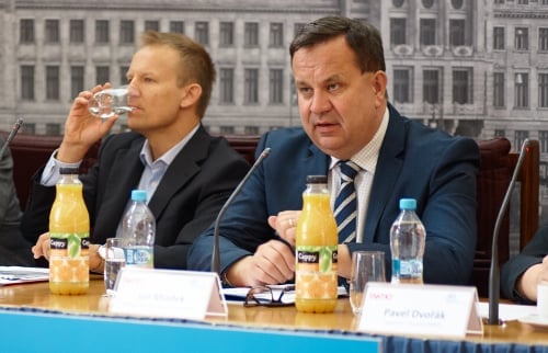 Ministr průmyslu a obchodu Jan Mládek (vpravo) letos v dubnu sliboval, že k vypínání celoplošných multiplexů DVB-T dojde co nejpozději. Kvůli kompenzacím pro operátory ale stát nemůže vyčkávat příliš dlouho.