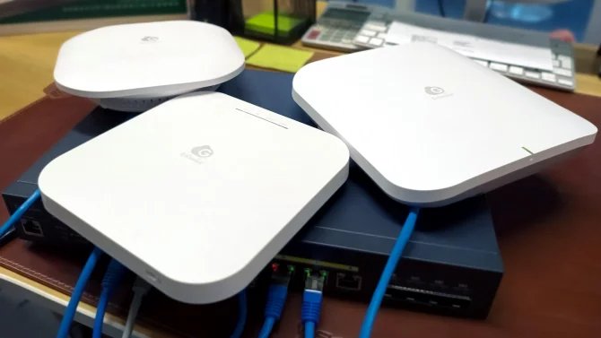 Data byla ze serveru posílána přes switch (EnGenius ECS2512FP) přímo do přístupových bodů využívajících Enterprise Wi-Fi řešení od výrobce EnGenius. Konkrétně se jednalo o modely ECW526 (Wi-Fi 7), ECW220 (Wi-Fi 6) a ECW120 (Wi-Fi 5 Wave 2).