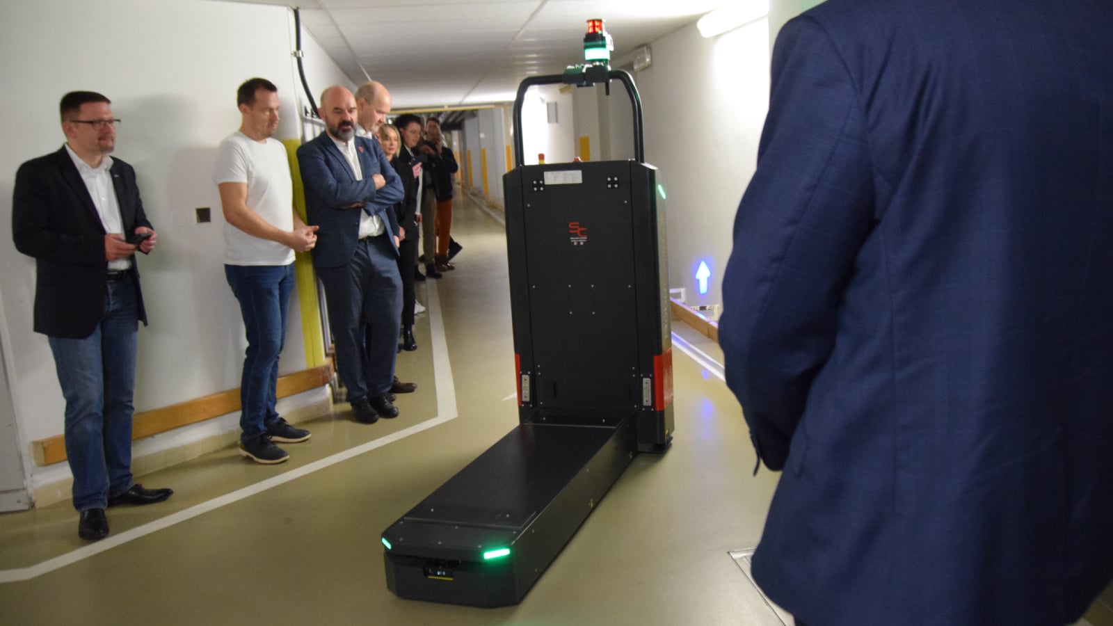 Aby se v chodbě pod Nemocnicí Jihlava rozjela zdejší nová chlouba, chvíli to trvá. Robot autonomně se pohybující v pozemních chloubách je opatrný: kolem něj se právě pohybuje řada novinářů a má jasně nařízeno, že pokud bude někdo v okolí, musí zásadně zpomalit nebo rovnou úplně zastavit. Má totiž kolem sebe bezpečnostní zóny, obležení zvědavých lidí tak raději zůstává na místě. Pacienti na JIPce, o dvě patra výš, kam míří, dnes možná na oběd počkají o chvilku déle. Jakmile mu lidé uhnou a rozjede se, malé zdržení ještě způsobí červená na semaforu. Bez jasného řízení by se tu on a jeho kolegové pohybovat nemohli.