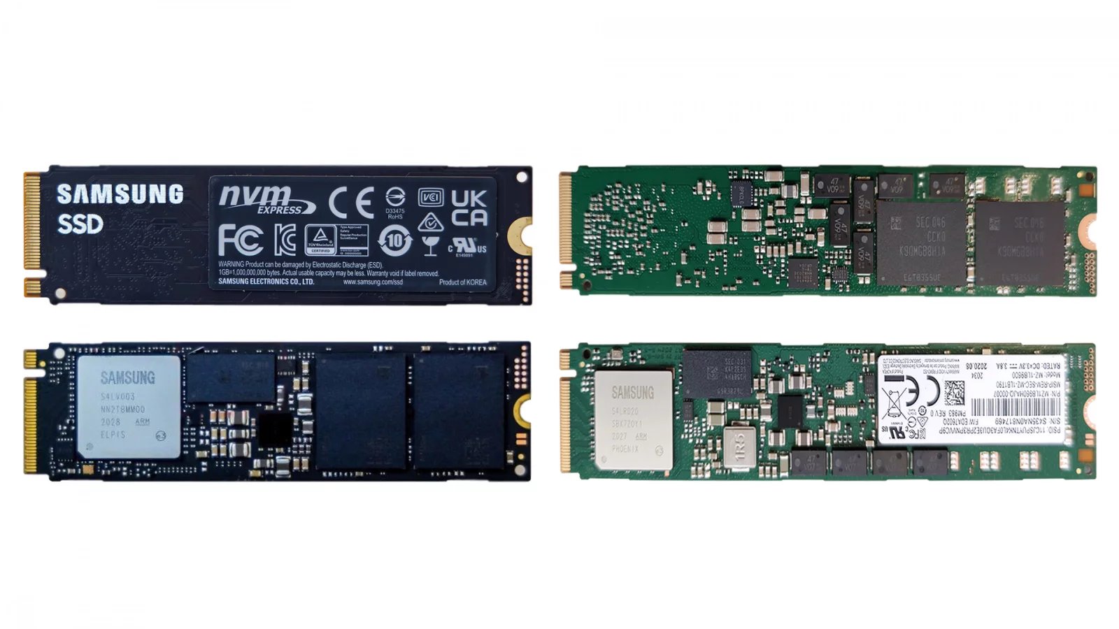 Serverový disk, tedy pravá část obrázku, má dvojnásobný počet paměťových čipů. Pouze takto je možné reálně garantovat počet přepisů disku. Samsung nespoléhá na žádné softwarové úpravy, reálně přidává komponenty, díky kterým je možné parametry komponenty garantovat.