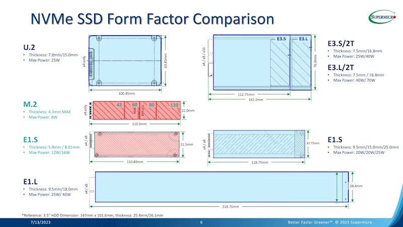 Trendem poslední doby jsou NVMe disky, které se vyrábí v mnoha provedeních, viz níže. U NVMe disků je velice důležité jejich chlazení, a nejen proto jsou rozměry disků důležité. Větší disk má větší plochu díky tomu se lépe chladí. A chladný disk je zároveň i rychlý disk.